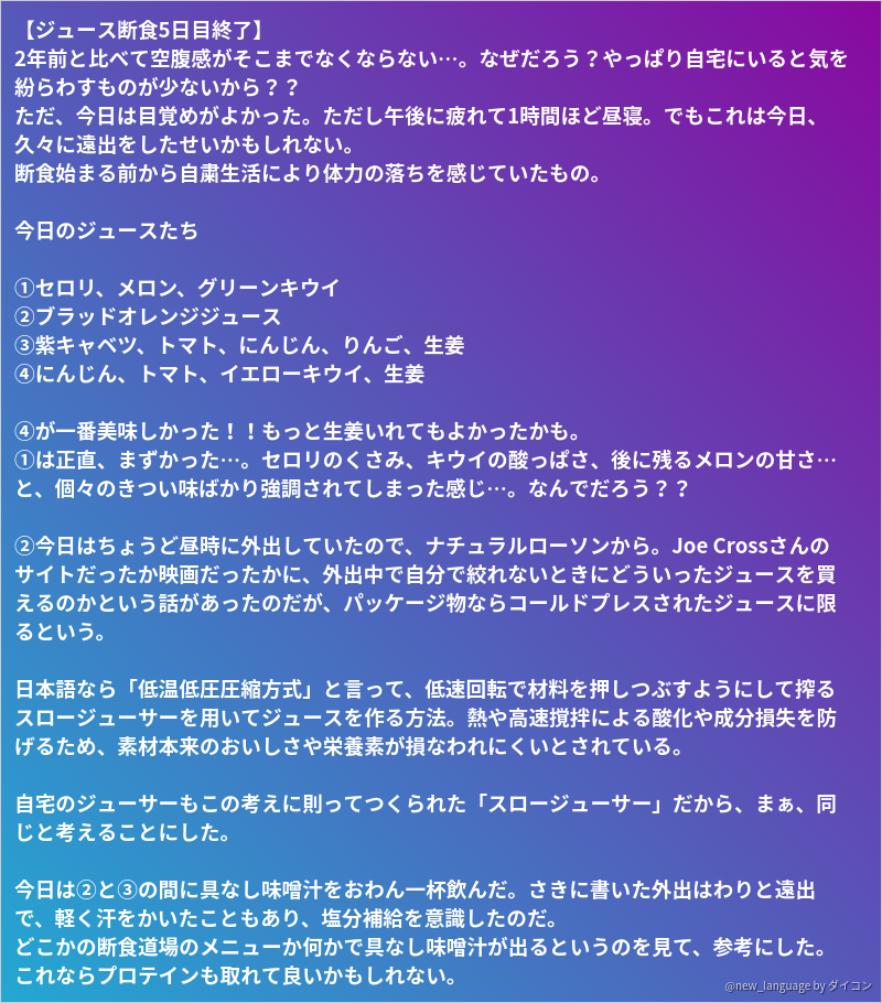 Wakana Catchpole / ジュース断食中 juice fasting