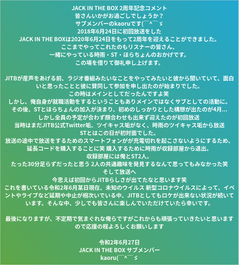 JACK IN THE BOX✨本日 2周年記念放送✨
